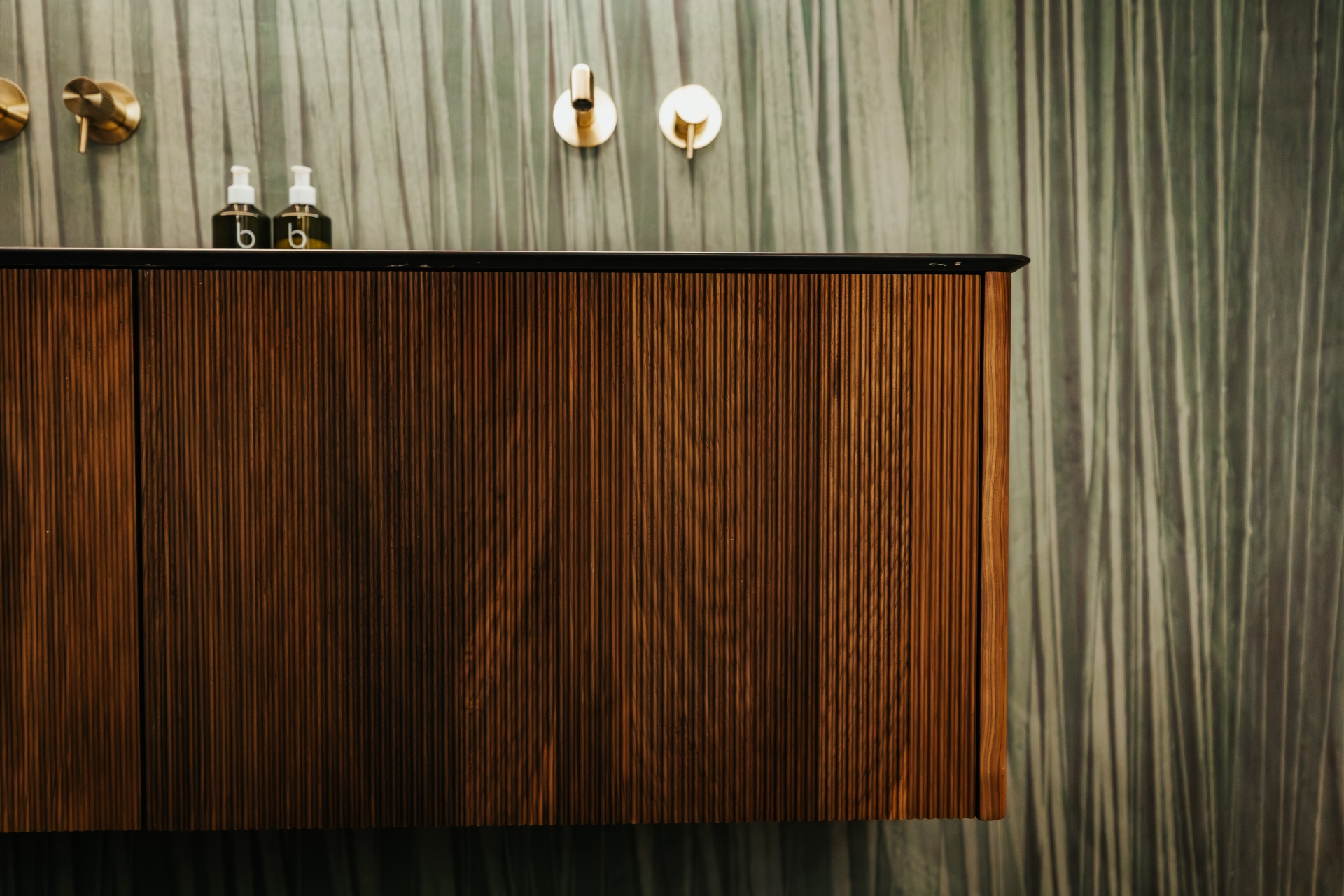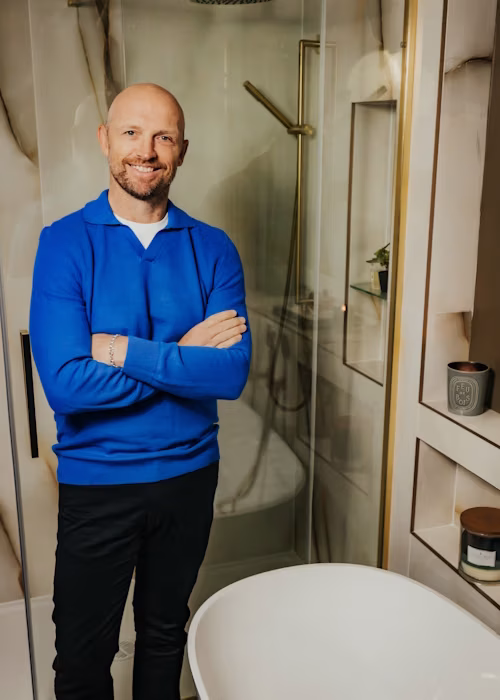 “The bath was designed as the emotional heart of the room – calm, grounding, and visually effortless.”