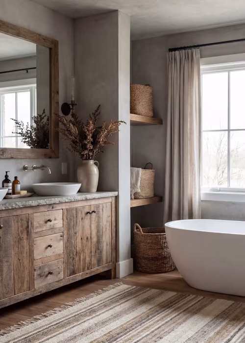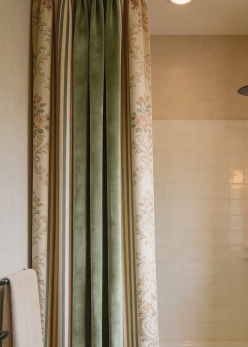 Curtains that feel more bedroom than bathroom make a powerful statement. Fabric shower curtains in muted tones or classic patterns soften the space and add timeless elegance, a look that’s here to stay.