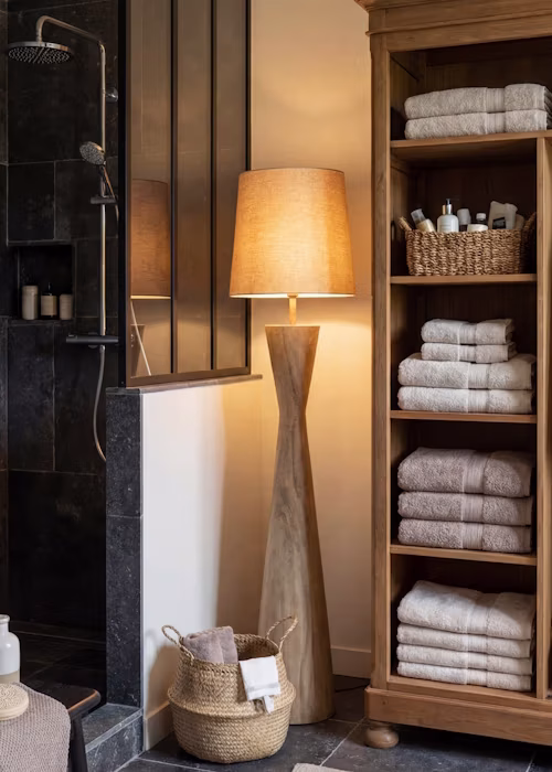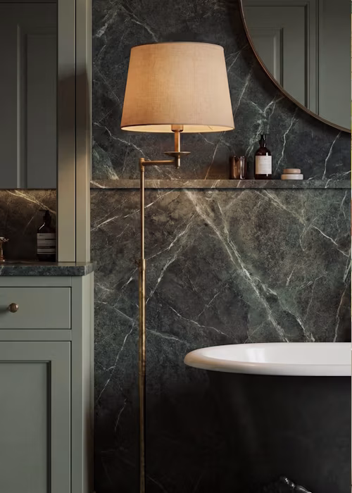 Bathrooms don’t need to rely solely on ceiling lights and mirrors. Introducing table lamps, antique-style lighting, candles, or even a small chair instantly softens the space and adds depth. This layered approach to lighting creates atmosphere, particularly in cloakrooms and en-suites, and works beautifully across both traditional and contemporary bathrooms.