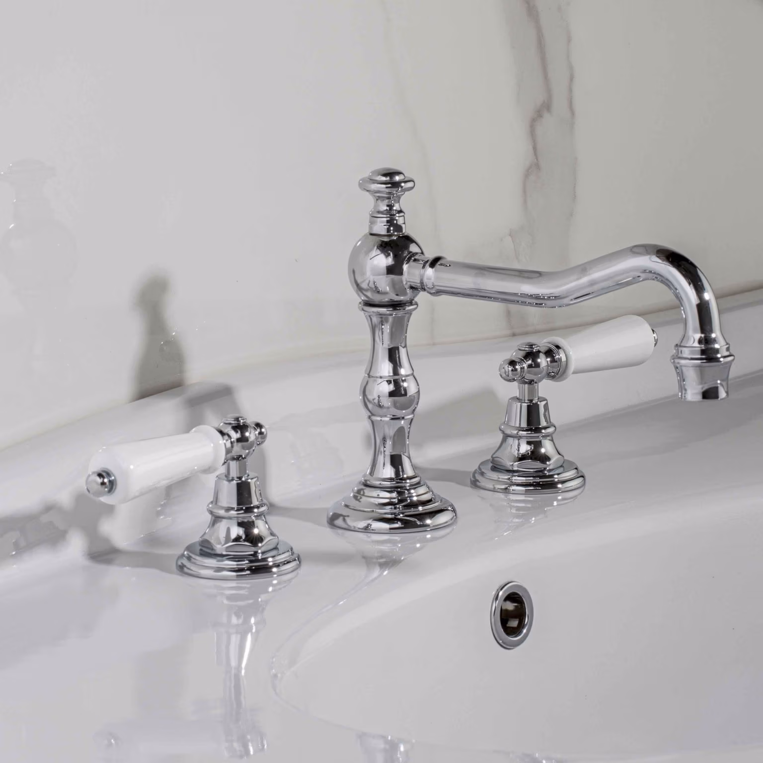 • White-porcelain lever handles (manettes) for tactile, fingertip control