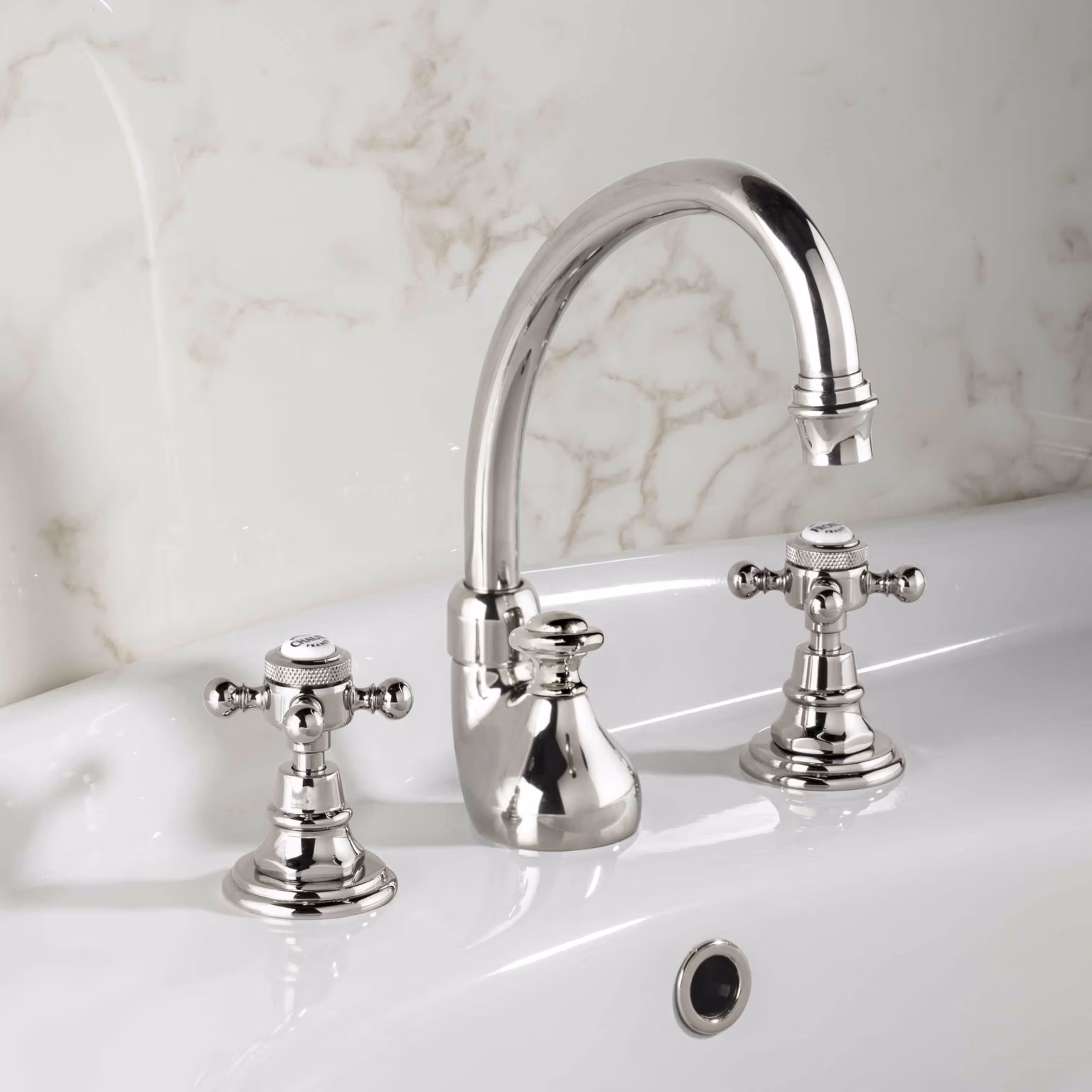 • Cross handles for secure grip and precise temperature/flow adjustment