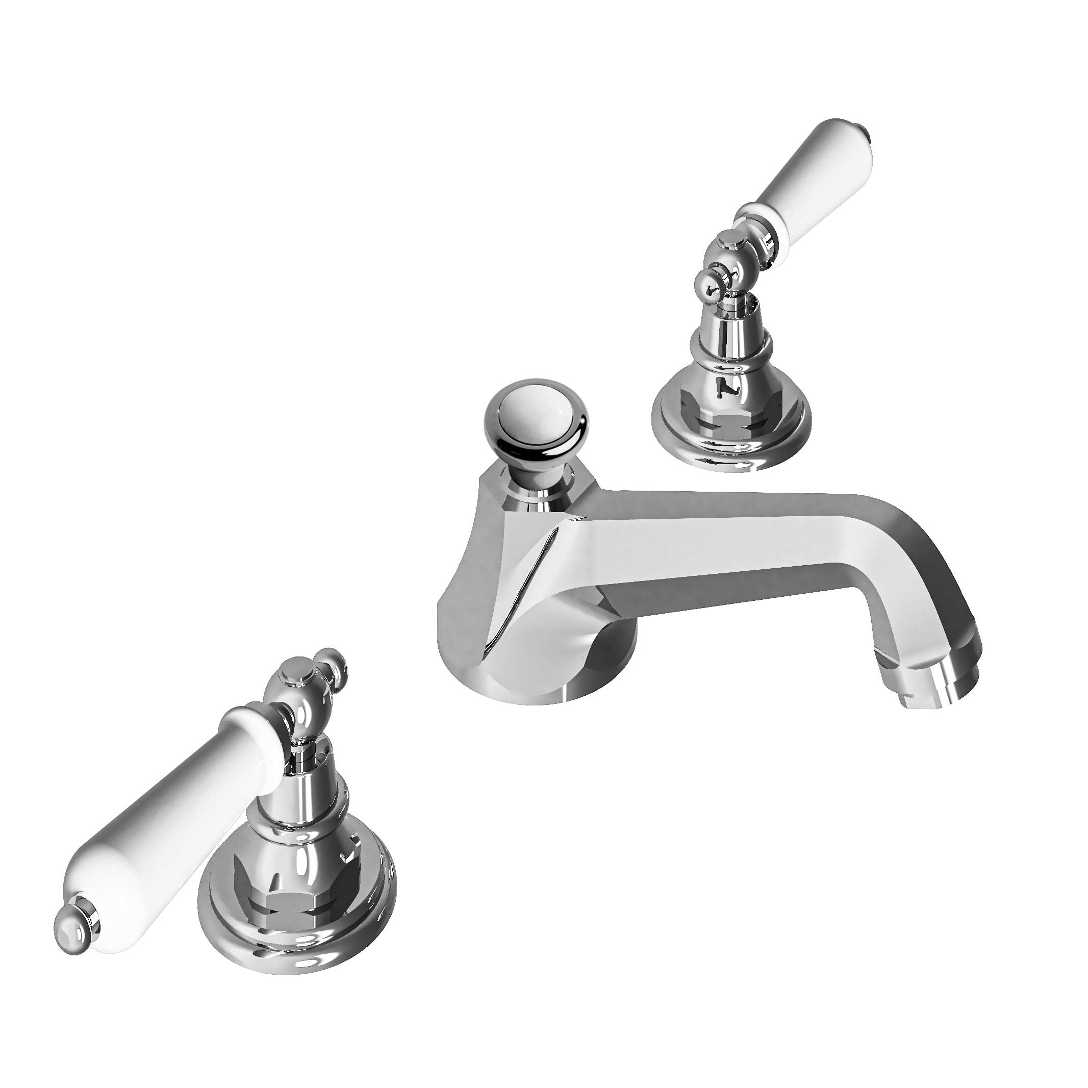 • White-porcelain lever handles (manettes) with smooth, fingertip control