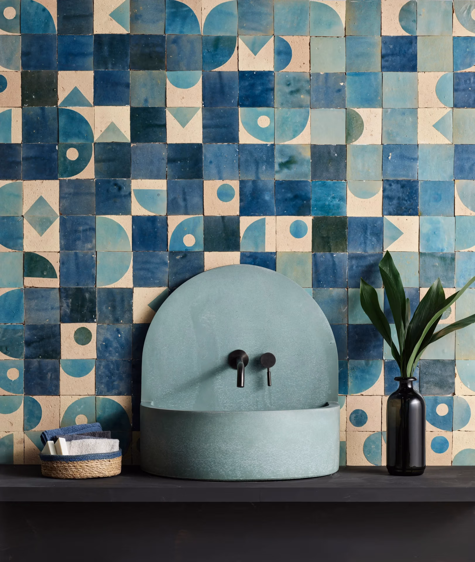 • Hand-cast concrete countertop basin with a slim, refined rim