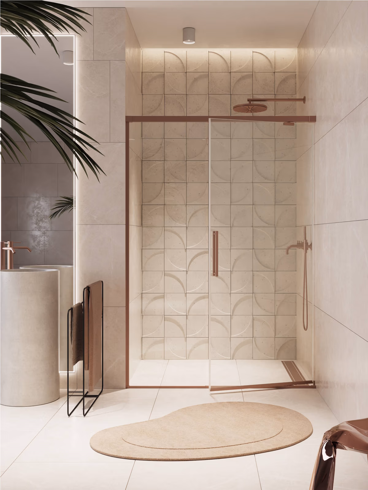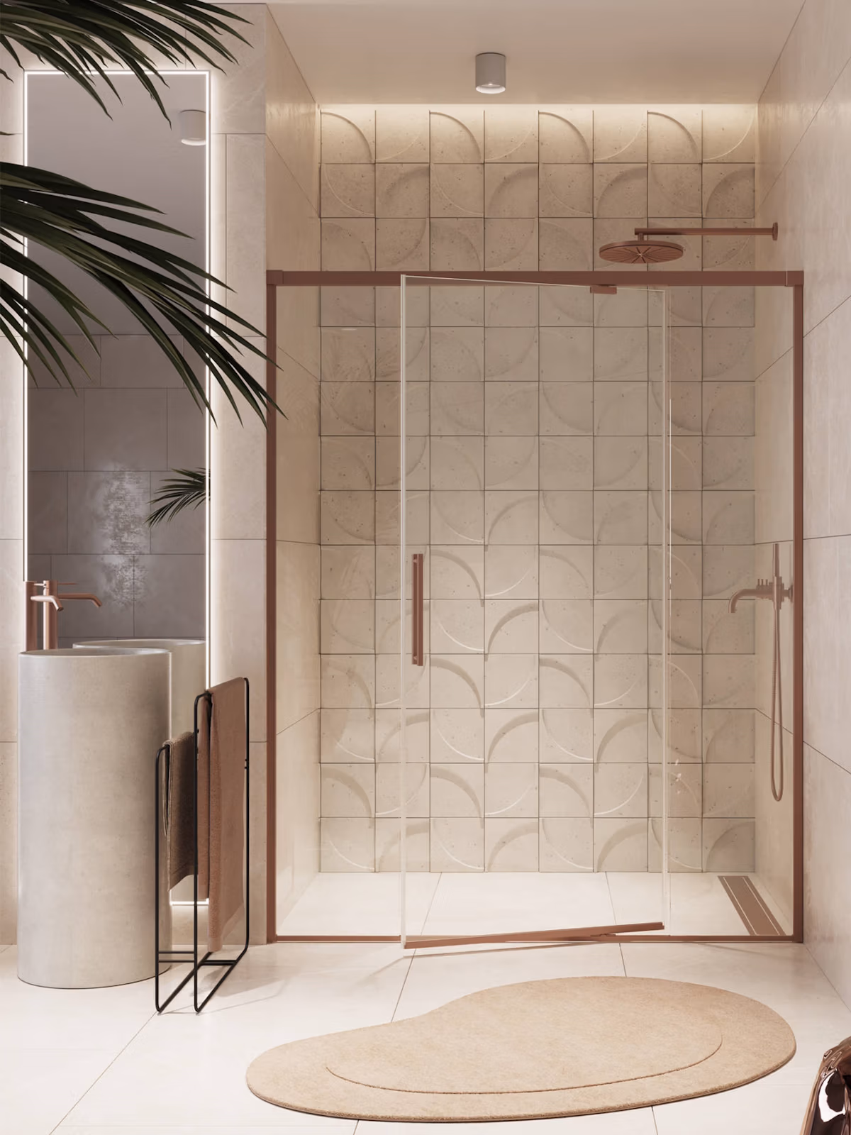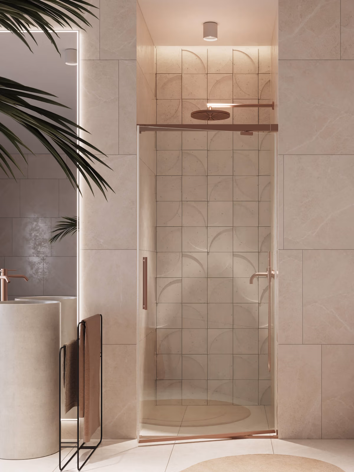 This innovative design choice creates an uninterrupted expanse of clear glass, allowing light to flow freely and transforming your shower area into a spacious, open, and inviting sanctuary. Each enclosure is custom-made to exact measurements, ensuring a perfect fit and a truly bespoke feel for your unique bathroom.