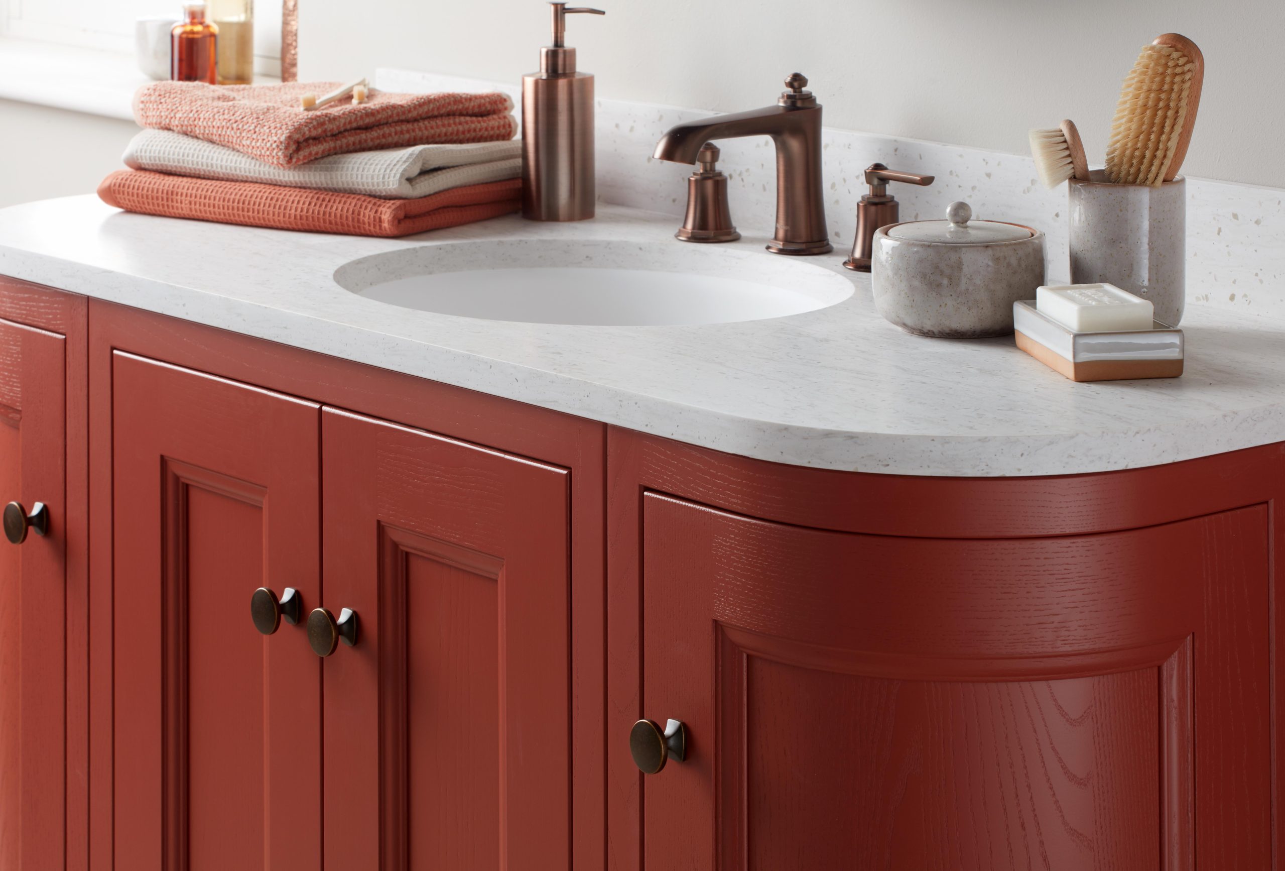 Tedbury Curved is a beautifully crafted bathroom furniture range that softens classic in-frame cabinetry with elegant sweeping curves. Designed to work in both compact cloakrooms and generous master bathrooms, it combines traditional detailing with a contemporary curved frontage for a look that feels luxurious but still timeless. Solid timber construction and dovetail drawer boxes give a reassuring sense of quality, while generous door and drawer configurations keep everyday clutter neatly hidden away. Available in a wide choice of painted finishes and sizes, Tedbury Curved lets you create a truly tailored vanity that suits your space and style.