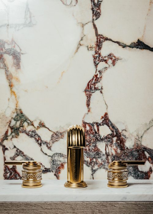 What truly sets Serdaneli apart is its materials library, think semi-precious stones, mother-of-pearl, marble, onyx and crystal. The brand invites bespoke finishes and even allows you to provide your own marble for taps and door handles.