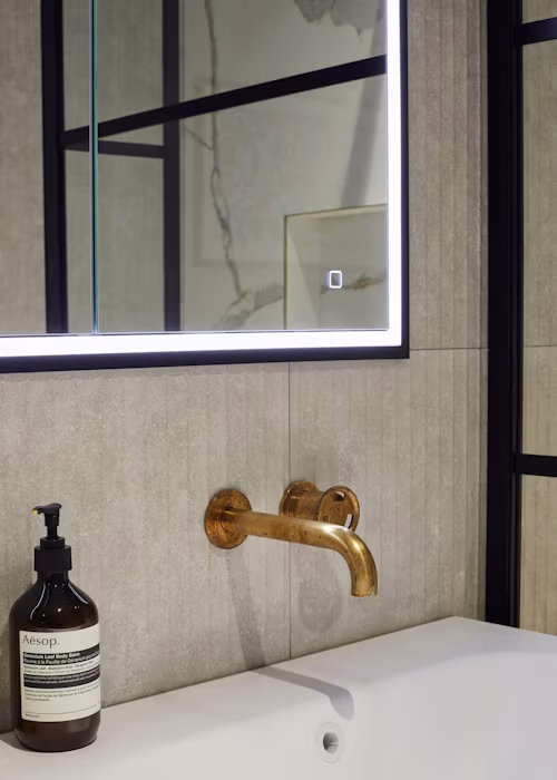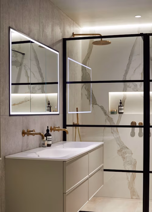 Our expert designers at Kallums Bathrooms recently completed a stunning refurbishment in West London, transforming four bathrooms: a master en suite, family bathroom, shower room, and downstairs cloakroom. We were proud to provide full design and supply services for this luxury project.Our clients approached us with a clear vision — they loved the look of natural brushed brass and wanted it to feature across all four bathrooms, while still ensuring each space had its own distinct character. Our team created four stylish, practical bathrooms that balance consistency with individuality.